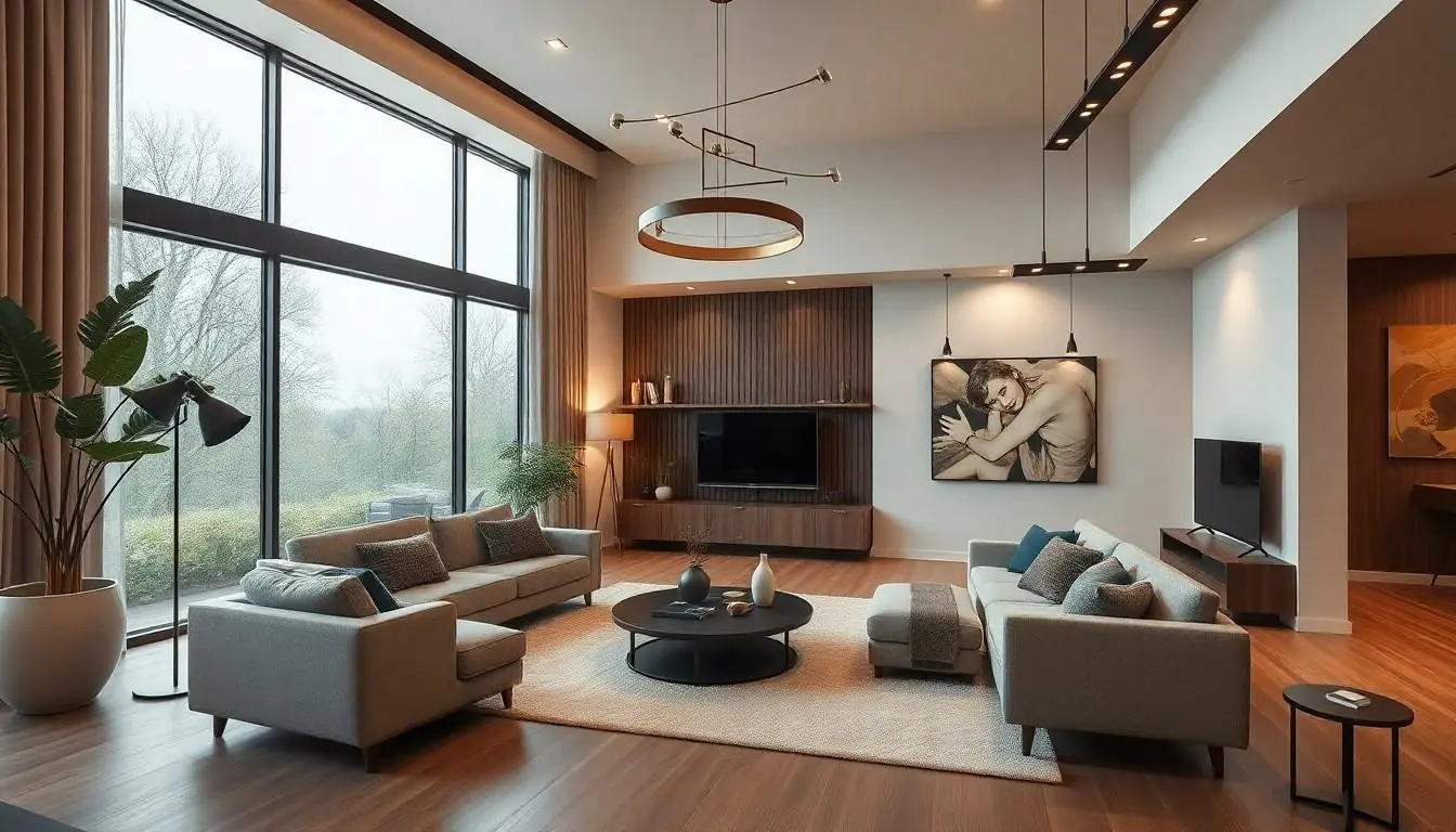 Color and light significantly influence a space’s mood and perception. Each color evokes different feelings, making the choice of palette essential to design. Designers leverage color theory to create harmony and balance within rooms. Natural light enhances spaces, bringing warmth and vitality. Use of large windows or skylights allows for optimal illumination, highlighting architectural features. Layering artificial light sources adds depth and versatility, adjusting settings for various activities. Intentionally planned lighting creates inviting spaces while showcasing design elements effectively.